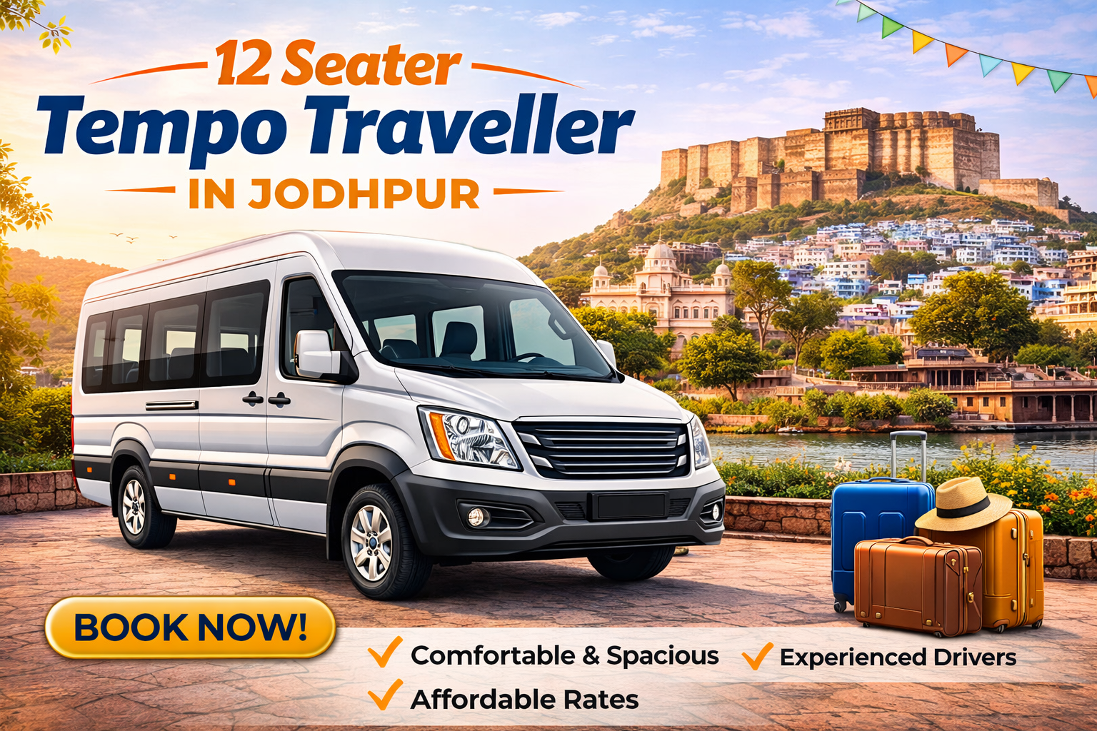 Contact us now to get the best price for Tempo Traveller rental in Jodhpur and confirm your booking quickly.